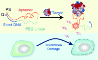 Molecular mediation of singlet oxygen generation is demonstrated based on a newly engineered aptamer probe. Both ATP and human α-thrombin aptamers were engineered to testify to this design, and both showed that the production of singlet oxygen can be triggered and quantitatively mediated by the presence of target molecules. Moreover, both photosensitizer aptamer switch (PAS) probes showed excellent selectivity toward their targets. These results suggest that a PAS can serve as a smart photodynamic therapy agent.