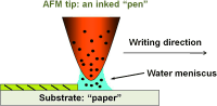 Dip-pen nanolithography (DPN) can be used as a feasible technique for the fabrication of various inorganic nanostructures on substrates with nanometer-scaled resolution. The high registration and great flexibility in shape and location control make it unique and powerful. This atomic force microscopy based technique also offers convenience for in situ characterization of the obtained nanostructures. This Focus Review summarizes the challenges and progress in preparing inorganic nanostructures with DPN.