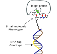 DNA decoder: The collection of organic molecules, individually coupled to distinctive oligonucleotides, is generally referred to as “DNA-encoded chemical library”. In full analogy to phage display technology, these libraries can be panned on immobilized target proteins and analyzed (before and after selection) by suitable “decoding” methods (for example, DNA-sequencing).