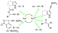 From C to shining C: The fast-expanding field of gold catalysis has recently been extended to cross-couplings, including Suzuki and Sonogashira reactions. From the AuI/AuIII redox couple to the development of tandem routes, gold exhibits an impressive potential for cross-coupling reactions. The combination of gold with palladium gives rise to yet further synthetic opportunities.