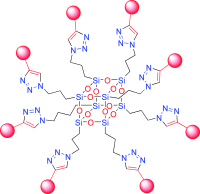 Platonic scaffold: Octa(azidopropyl) cube-octameric silsesquioxane is a versatile scaffold for uniform eightfold symmetric decoration by efficient Huisgen-type 1,3-dipolar cycloaddition under both thermal and CuI-catalyzed conditions (see scheme). Applications are demonstrated for the formation of glycoclusters, as well as an entry to dendrimer synthesis by functional azide-to-alkyne reversion with implicit doubling to sixteenfold attachment sites.