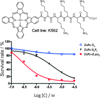 A new unsymmetrical zinc phthalocyanine photosensitizer (pentalysine β-carbonylphthalocyanine zinc, ZnPc-(Lys)5) was prepared in large quantity and high purity. This water-soluble cationic photosensitizer shows high tumor phototoxicity and significant inhibition of tumor growth.