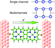 The length–conductivity relations of conjugated molecules are diverse—and they are dominated by the electron-transport pathway (see picture). In the case of a single channel, the conductance decays rapidly with the length and follows an exponential law. However, when the molecular wires have multichannels, the decay of conductance does not follow the exponential relation.