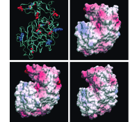 Compatible partners: A modelling study provides insight into the properties relevant for enzyme encapsulation inside mesoporous silica materials. Pepsin is negatively charged but its surface presents both positive and negative patches (see picture). Its structure has a significant rigidity and stability combined with atomic-scale flexibility. These factors could contribute to the production of bioinorganic hybrids.