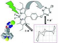 The photophysical, electrochemical and spectroelectrochemical properties of new BODIPY-tetrazine dyads have been investigated. As expected, these dyes have very low fluorescence yields due mainly to intramolecular energy transfer between the BODIPY chromophore and the tetrazine moiety.