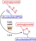 Here, we report on an alternative procedure to prepare aminoglycoside–dinucleotide and –diPNA conjugates which combines copper-catalyzed Huisgen azide-alkyne cycloaddition with microwave irradiation (MW).