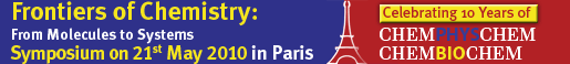On May 21, 2010, ChemPhysChem and ChemBioChem celebrate their 10th anniversary with a one-day symposium in Paris. Ten speakers, including four Nobel laureates, will discuss the frontiers of chemistry.